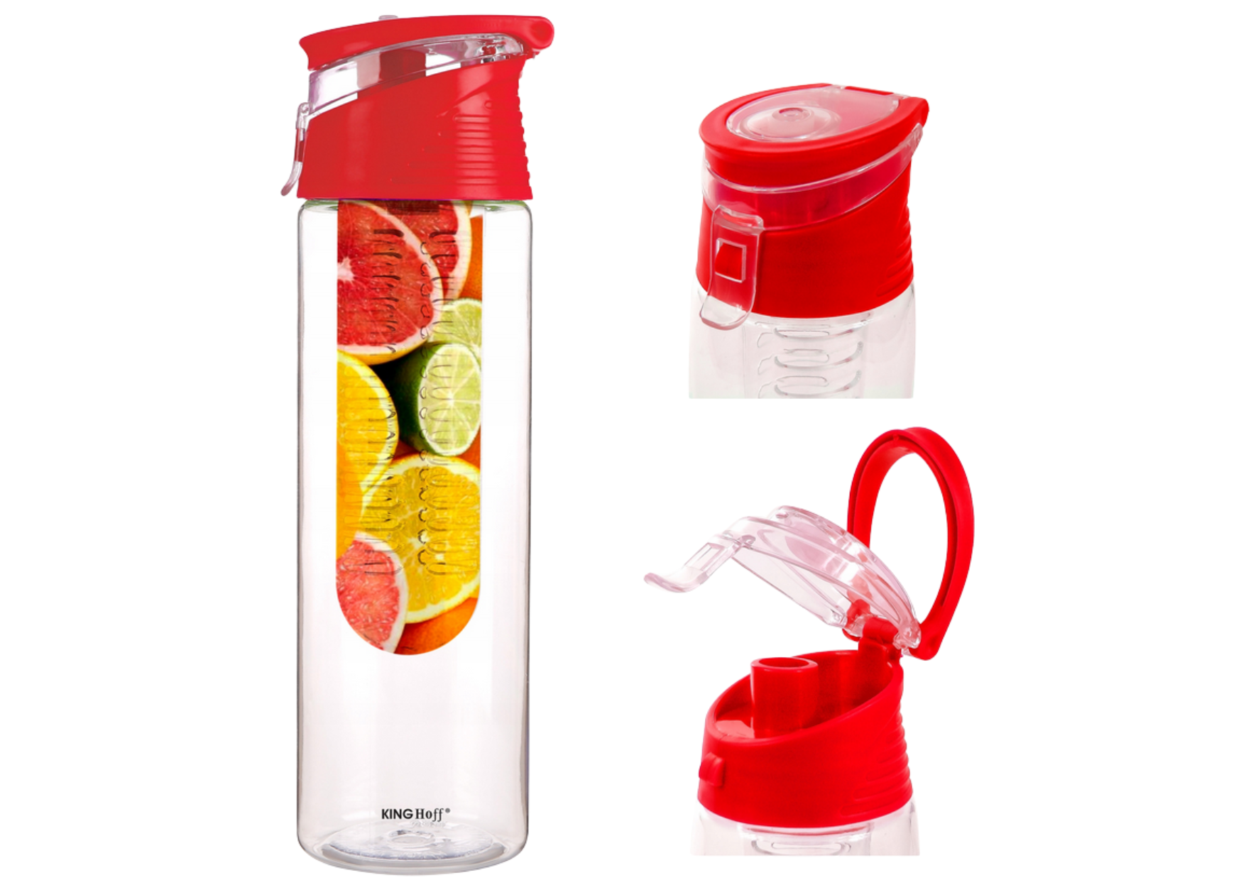 Bidon BUTELKA NA WODĘ z wkładem na owoce 0,8 L KH-1192 KingHoff CZERWONA