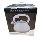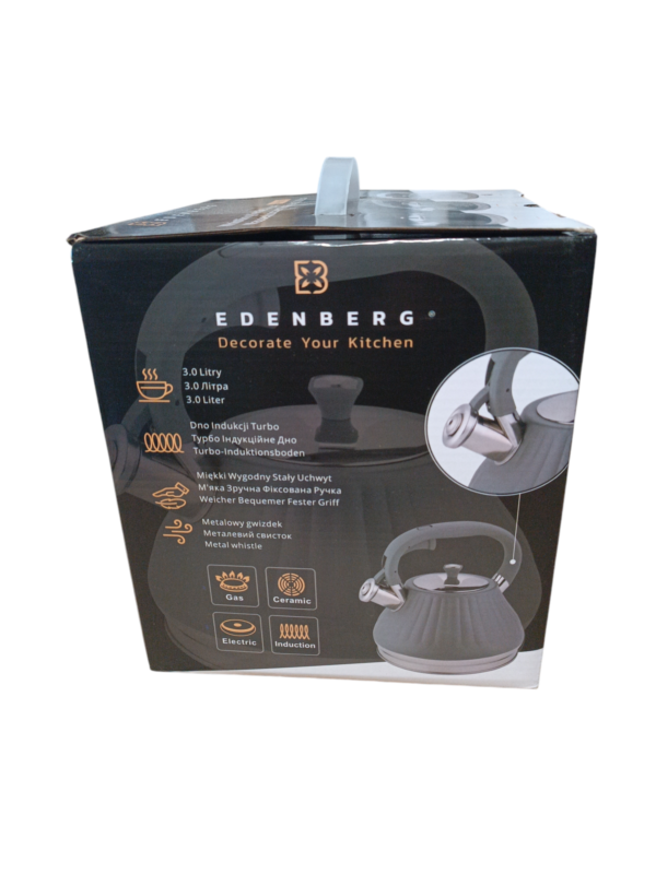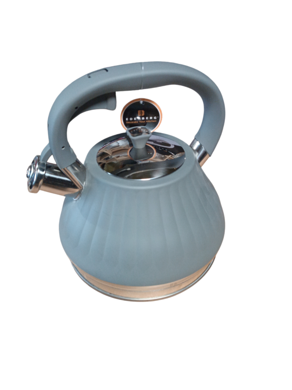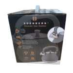 Czajnik z gwizdkiem Edenberg 8857 o pojemności 3 litrów to doskonały wybór dla osób poszukujących eleganckiego i funkcjonalnego akcesorium do kuchni. Wykonany z wysokiej jakości stali nierdzewnej w efektownym szarym wykończeniu, czajnik wyróżnia się nowoczesnym designem, który doskonale wpisuje się w trendy współczesnych wnętrz. Dzięki swojej trwałości oraz odporności na wysokie temperatury, zapewnia długotrwałe użytkowanie, które sprosta wymaganiom nawet najbardziej wymagających użytkowników.