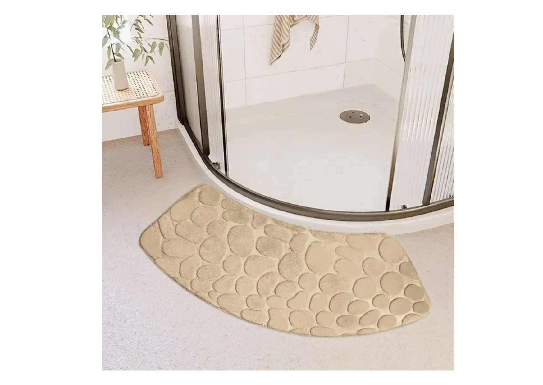 Dywanik, mata łazienkowa do zaokrąglonej kabiny BEŻ  antypoślizgowa