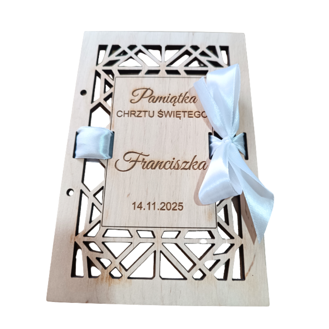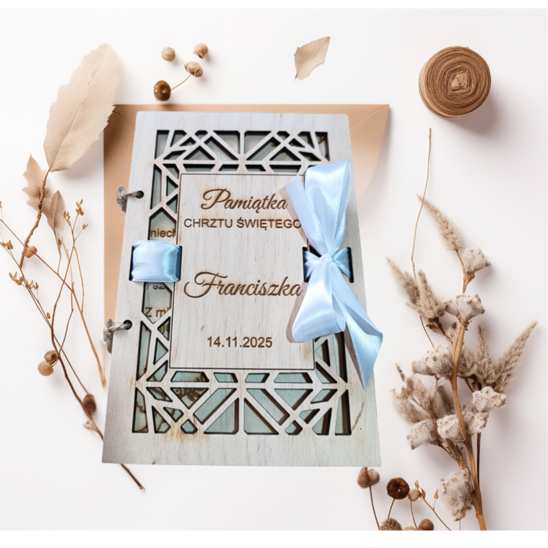 Szukasz wyjątkowej pamiątki na Chrzest Święty? Ta elegancka, drewniana kartka to idealny wybór – trwała, estetyczna i w pełni personalizowana. Wykonana z wysokiej jakości sklejki brzozowej, będzie piękną pamiątką na długie lata.