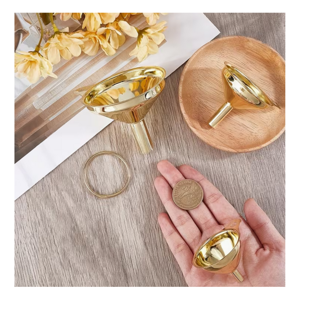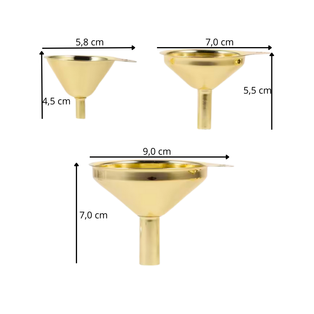 Wymiary lejków to: duży lejek o średnicy 9,0 cm i wysokości 6,50 cm, średni lejek o średnicy 7,0 cm oraz mały lejek o średnicy 5,8 cm. Dzięki ich różnorodności, z łatwością dopasujesz lejek do swoich potrzeb.