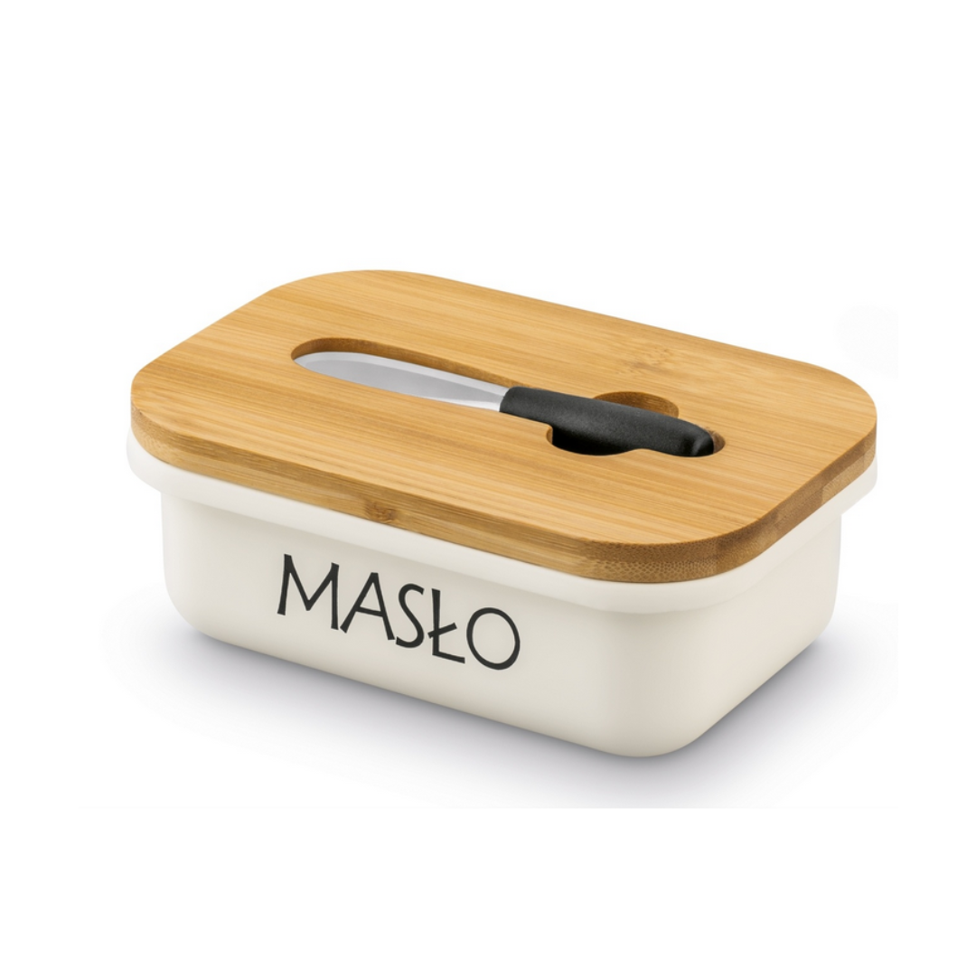 Maselniczka z nożykiem ze stali nierdzewnej z bambusem – BEŻOWA | TADAR
