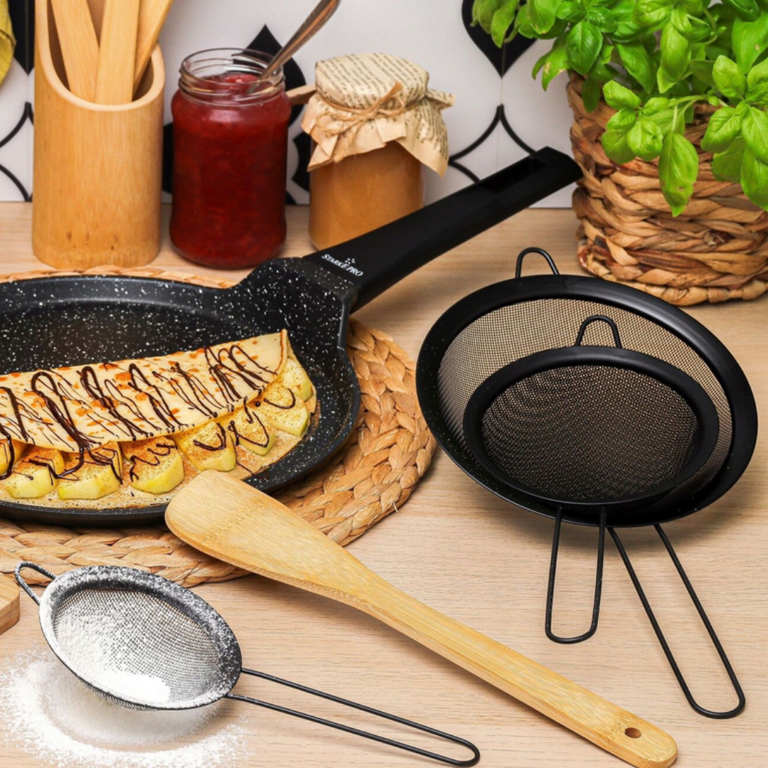 Styl, funkcjonalność i niezawodność w Twojej kuchni! Zestaw 3 stalowych sitek marki Tadar to praktyczne rozwiązanie do codziennego gotowania i przygotowywania potraw. Elegancki czarny mat świetnie pasuje do nowoczesnych wnętrz i wyróżnia się na tle klasycznych akcesoriów kuchennych.