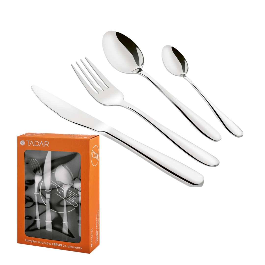 Elegancki i ponadczasowy zestaw sztućców LEROS to idealny wybór do codziennego użytku oraz na wyjątkowe okazje. Klasyczna, gładka forma w połączeniu z połyskującym wykończeniem sprawia, że sztućce doskonale prezentują się na każdym stole.