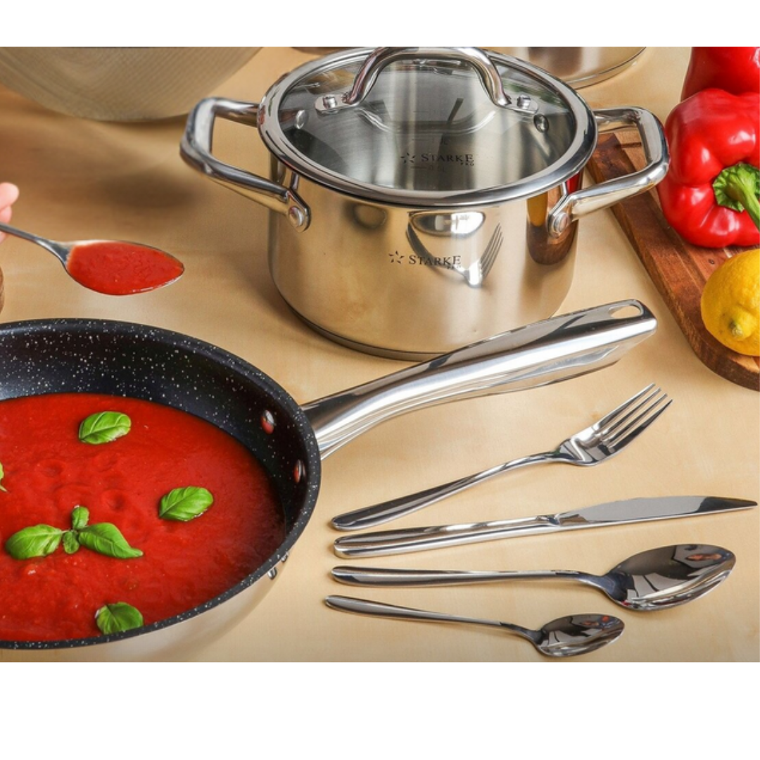 Wykonane z wysokiej jakości stali nierdzewnej, są solidne, ciężkie i bardzo wygodne w użytkowaniu. Starannie wykończone krawędzie zapewniają bezpieczeństwo i komfort podczas jedzenia.