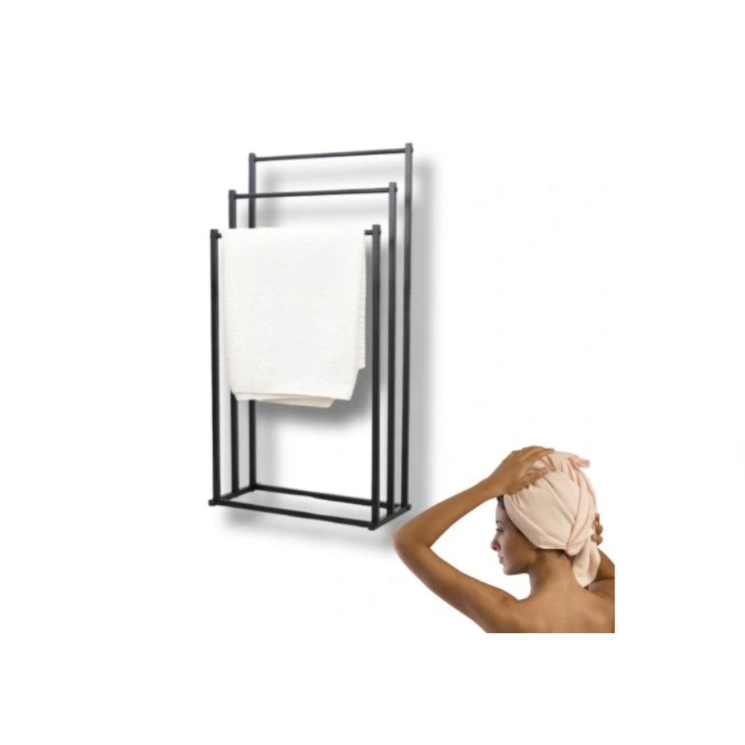 Uniwersalny wieszak łazienkowy na ręczniki to idealne rozwiązanie dla osób poszukujących funkcjonalnych i estetycznych akcesoriów do łazienki. Wykonany w całości z metalu w eleganckim czarnym kolorze, zapewnia nie tylko stabilność, ale i nowoczesny wygląd. Posiada trzy ramiona, co umożliwia wygodne i łatwe zawieszanie ręczników, dbając jednocześnie o zachowanie porządku w przestrzeni łazienkowej.