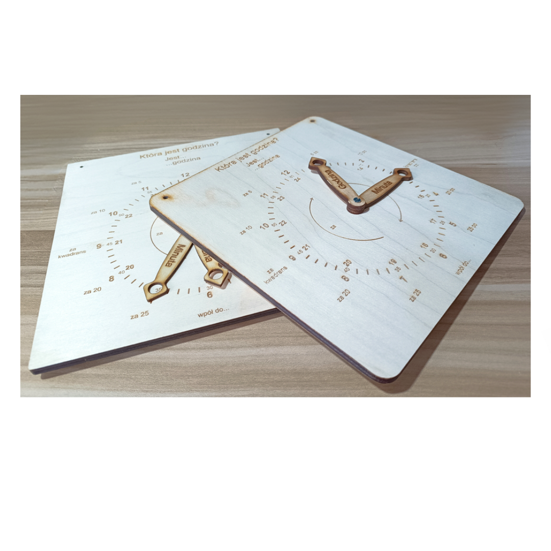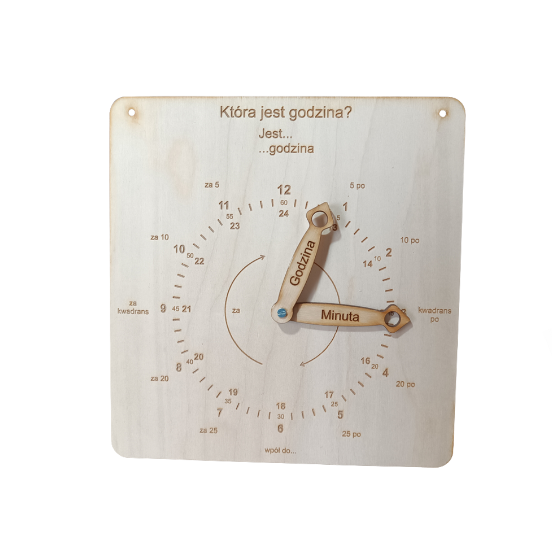 Zegar edukacyjny do nauki czasu dla dzieci 20×20 cm – GRAWEROWANY